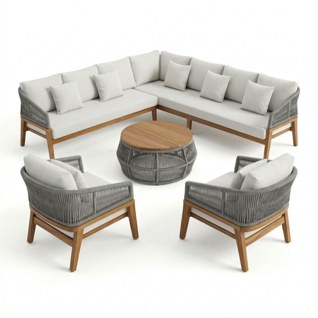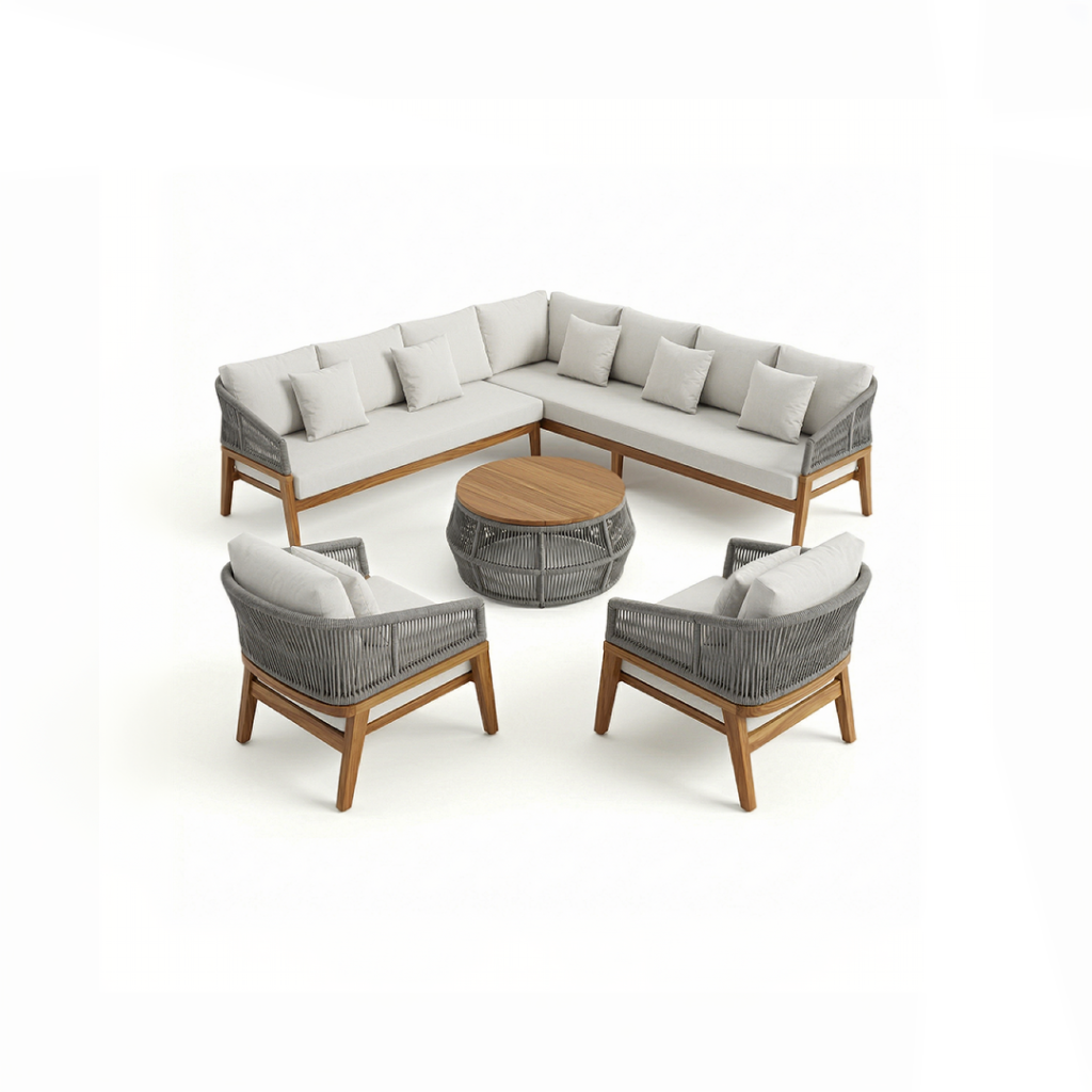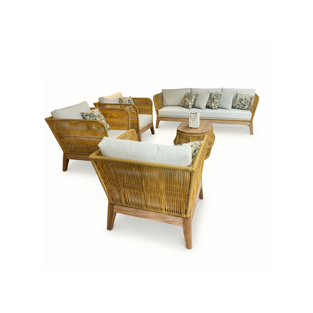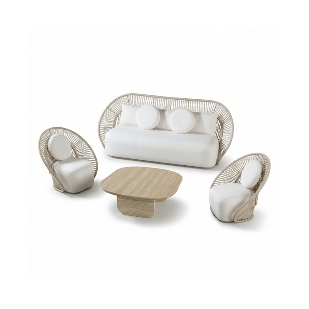 Calidad: Invertimos en mobiliario elegante, duradero y atemporal, fusionando fibras naturales y sintéticas de alta calidad con maderas nobles que trascienden modas.