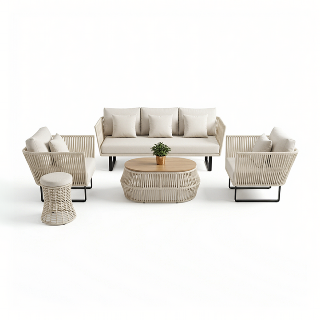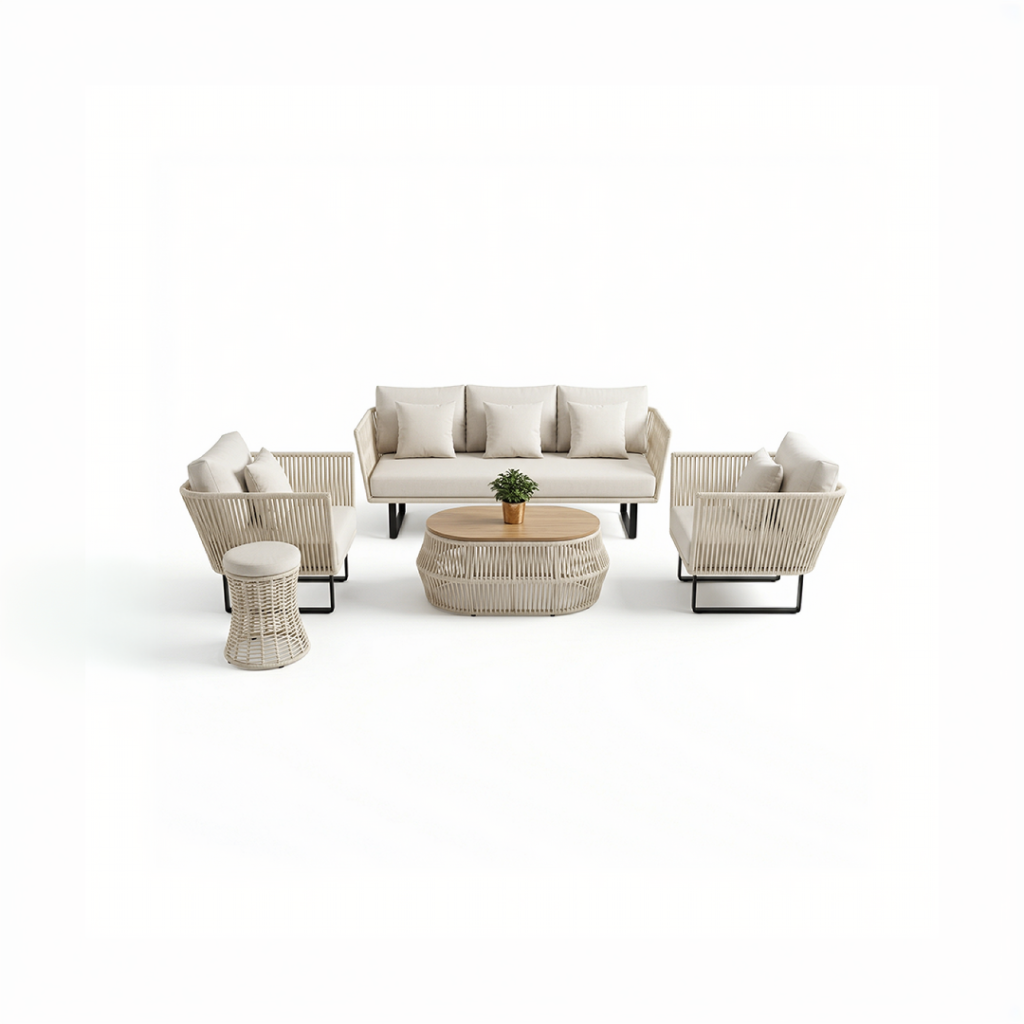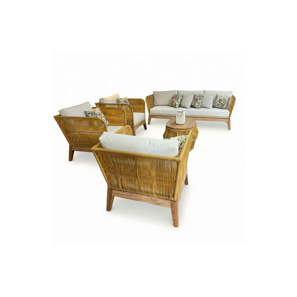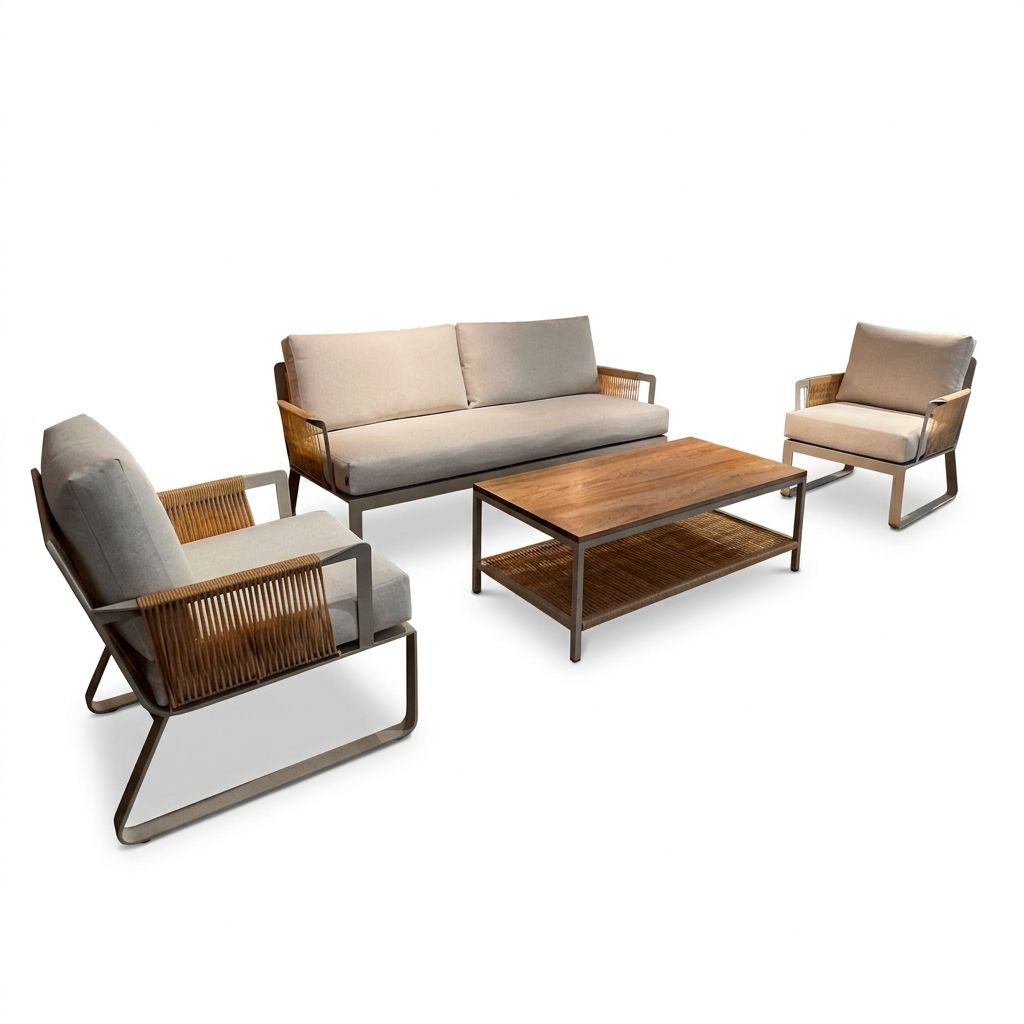 Calidad: Invertimos en mobiliario elegante, duradero y atemporal, fusionando fibras naturales y sintéticas de alta calidad con maderas nobles que trascienden modas.