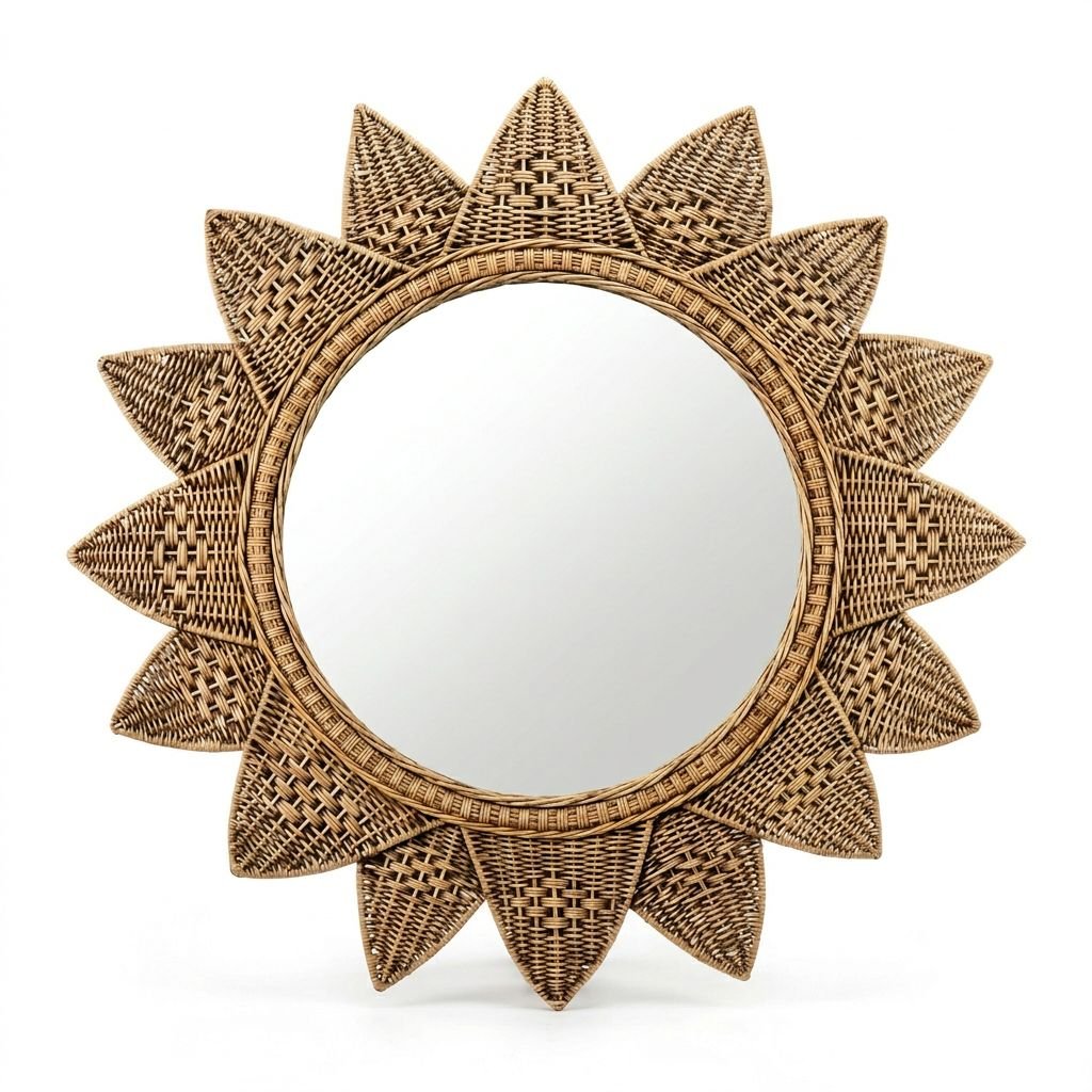 El Espejo Sol Artesanal se distingue por su diseño en forma de rayos, inspirado en la energía y la fuerza visual del sol, convirtiéndose en una pieza decorativa de alto impacto.