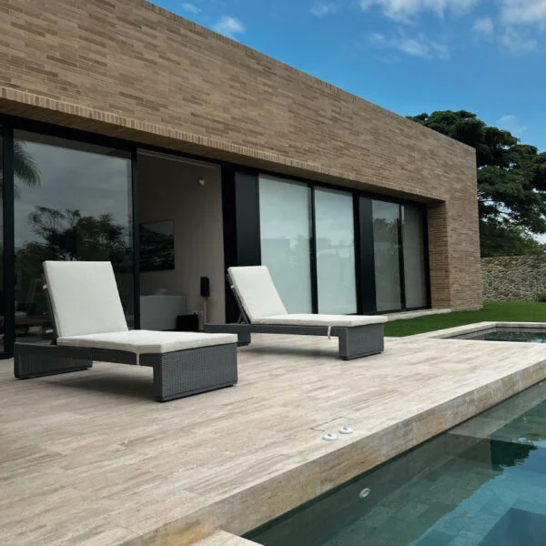 Déjate envolver por el lujo y la comodidad con nuestra Asoleadora Alemana, una pieza que redefine el descanso al aire libre. Su diseño geométrico y minimalista aporta un aire cómodo a cualquier espacio, mientras que su tejido en sintético alemán garantiza durabilidad y resistencia. La sólida estructura en madera de roble le otorga estabilidad, y su cojinería impermeabilizante y antiarañazos está pensada para un uso sin preocupaciones. Perfecta para quienes buscan estilo, comodidad y exclusividad en cada detalle.