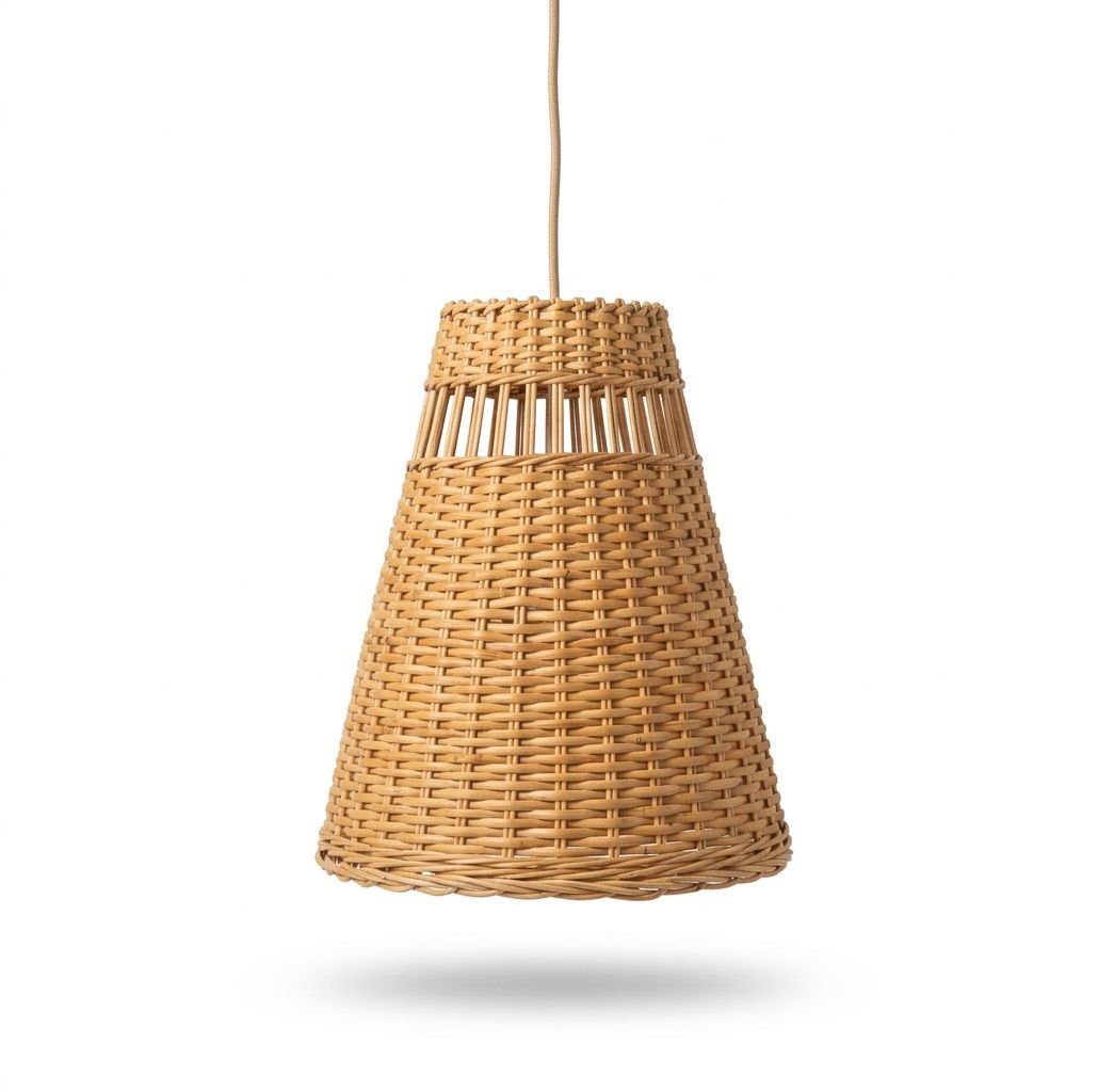 La Lámpara Caño se caracteriza por su forma cónica y su tejido en fibra natural, que aporta una estética limpia, cálida y atemporal. Su diseño permite una difusión de luz suave, ideal para crear ambientes acogedores sin sobrecargar el espacio.