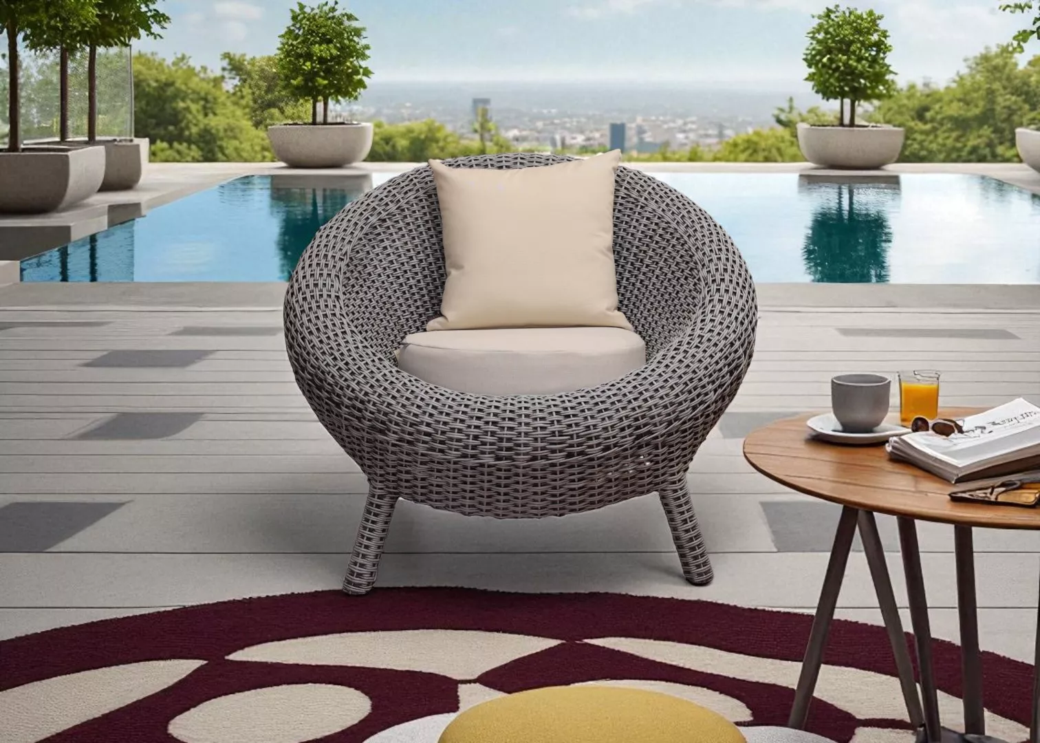 Nuestras colecciones utilizan ratán de la más alta calidad, tejido a mano sobre estructuras de aluminio.