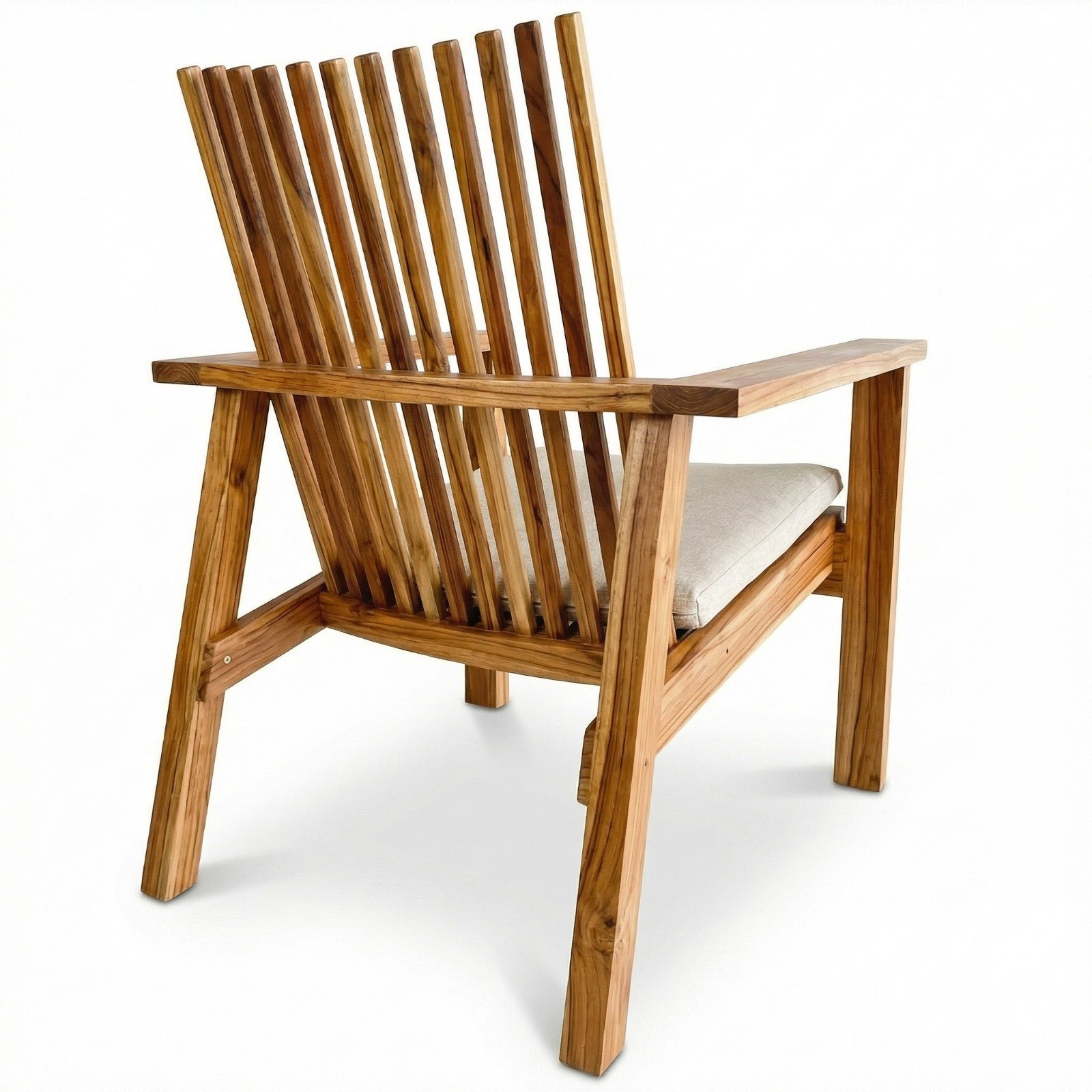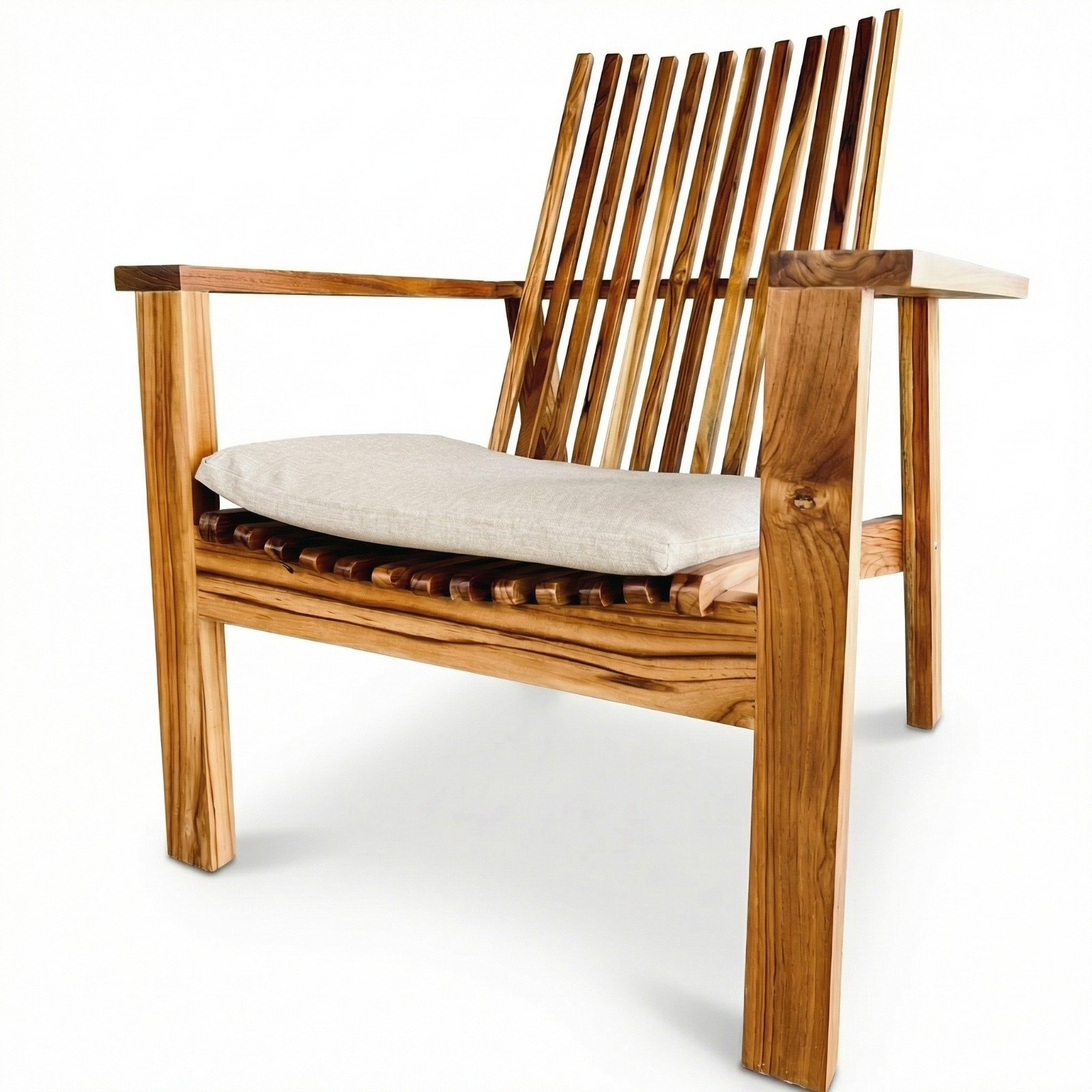 Inspirada en la silueta atemporal de la icónica silla Adirondack, la Silla Sirius reinterpreta este clásico con un enfoque contemporáneo y materiales de alta gama. Su estructura está elaborada en roble macizo de alta resistencia , seleccionada por su durabilidad natural y su imponente presencia estética.