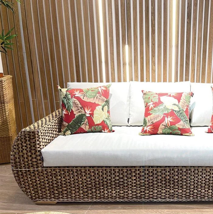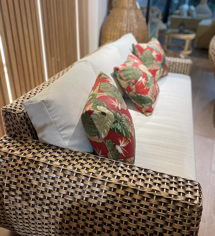 Hermoso y sofisticado sofá tejido a mano en mamure, color decape